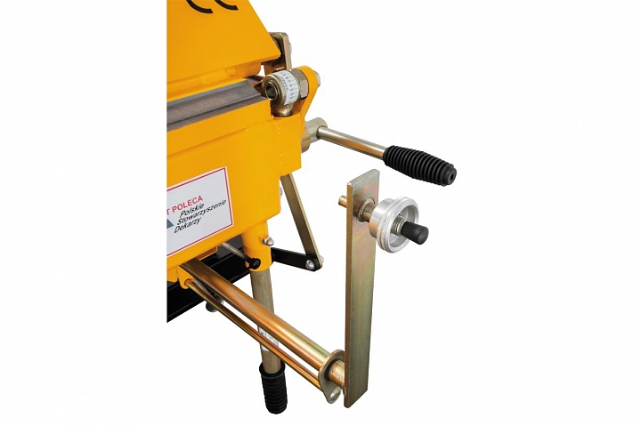 Задают фиксированный размер подачи листа из листогиба с фронтальной части станка для последующей резки роликовым ножом.