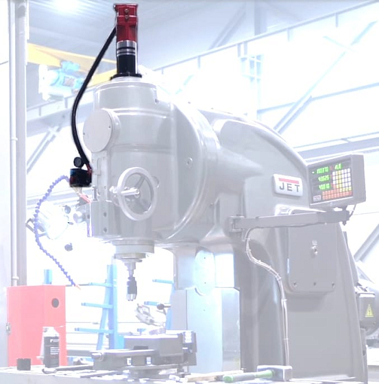 Пневматический зажимная тяга, представляет собой универсальный вид оснастки, применяемой для работы на универсально фрезерных станках, выпускаемым компанией JET. Приспособление является системой крепления инструментальных оправок в шпиндель и позволяет фиксировать их с помощью пневматики и сжатого воздуха. Устанавливается сверху фрезерной головки с креплением на шомпол. Подпружиненная накидная гайка, под действием давления воздуха, вращает зажимную тягу (шомпол) и втягивает инструментальную оправку в посадочный конус шпинделя. Предварительно необходимо сориентировать пазы оправки к упорам на шпинделе, предотвращающими проворот оснастки.